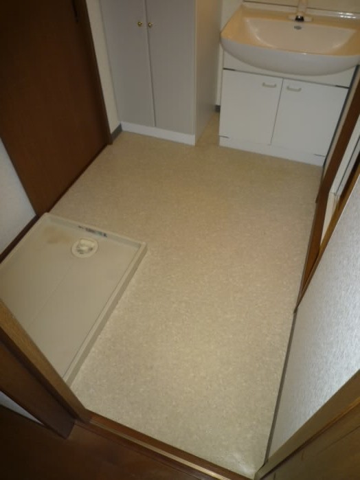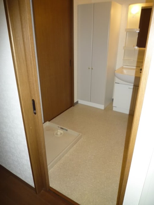 収納の向かい側には、洗濯機置き場があります。