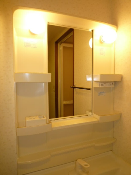 鏡の横と、洗面台の下に収納があるので、洗面用具や、