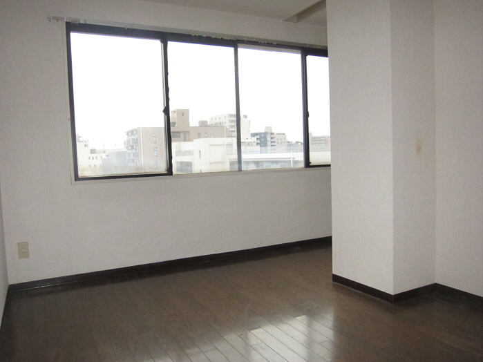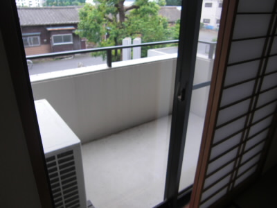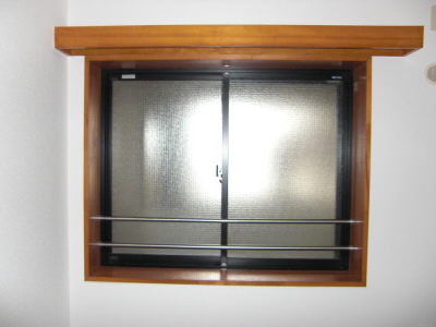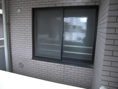 この窓は、玄関の隣の共有廊下に面しているのですが、