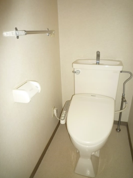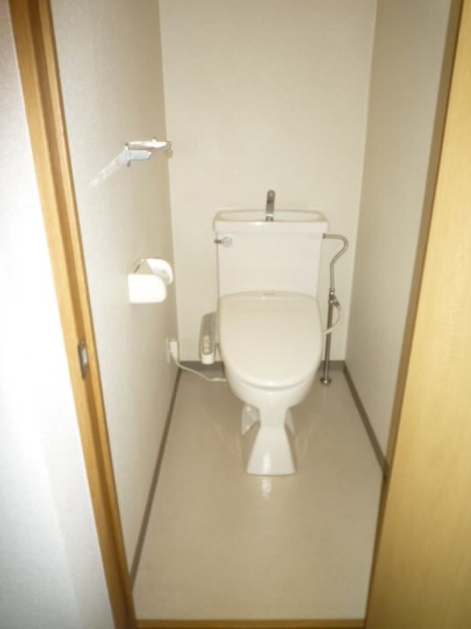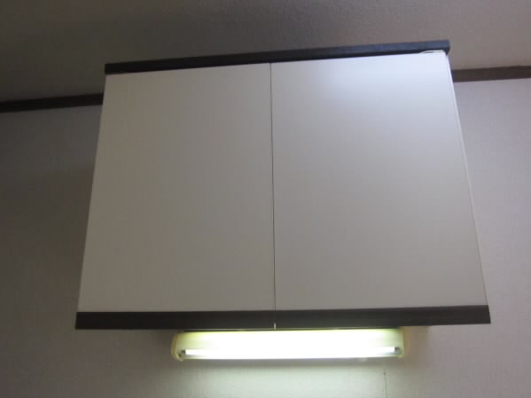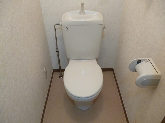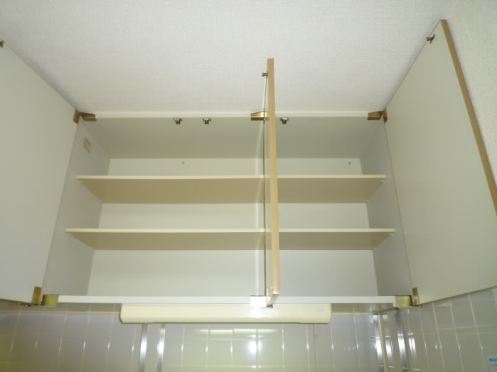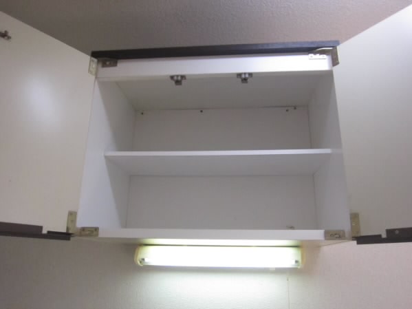 トイレの上には収納棚がありますので、トイレットペーパーや、