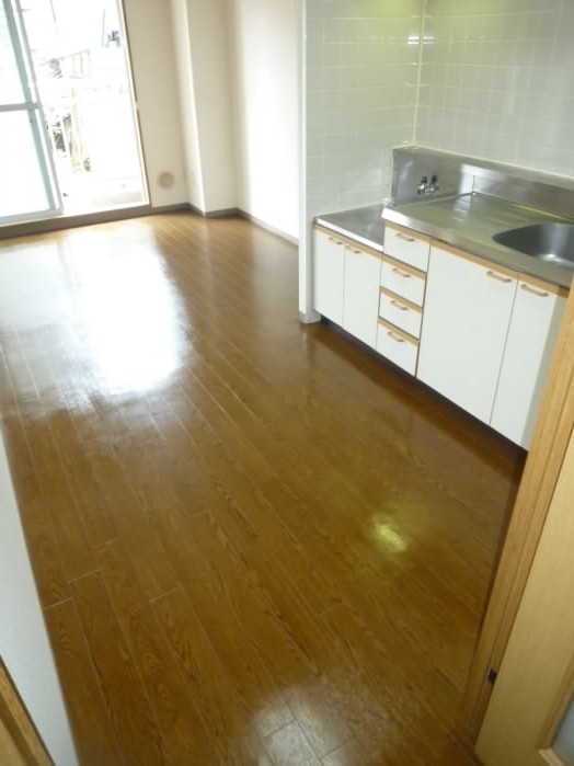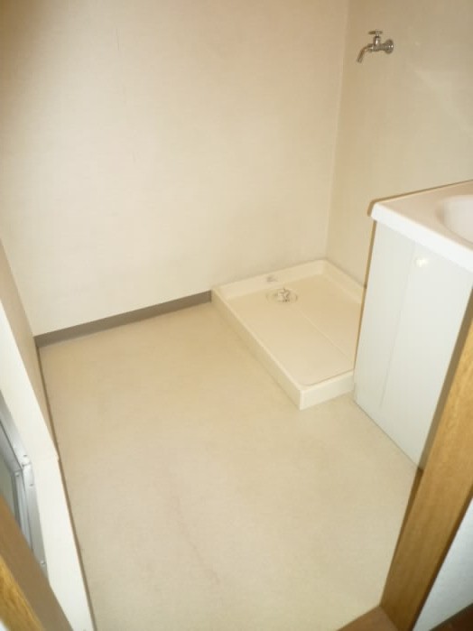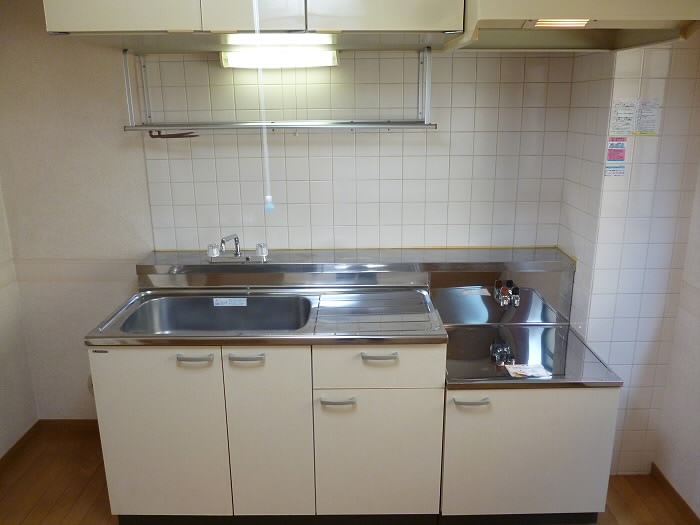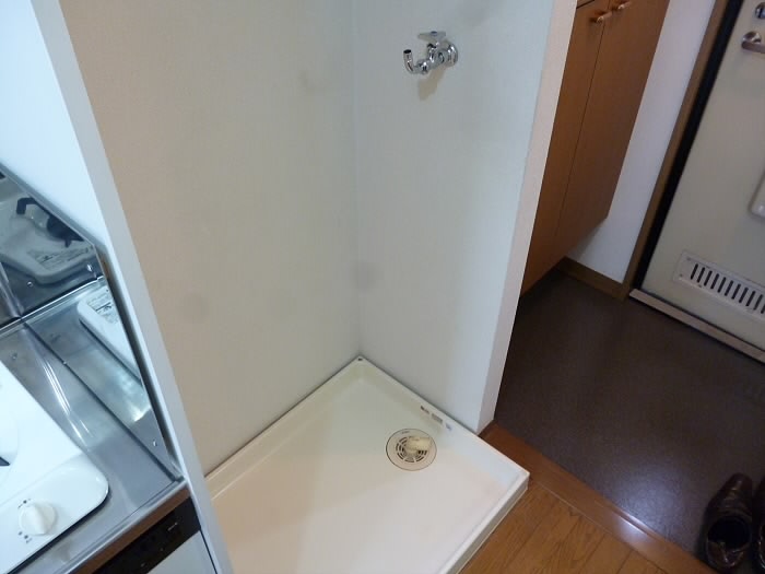 シンクの向かい側には、冷蔵庫を置くスペースがあります。