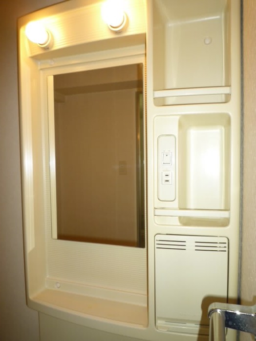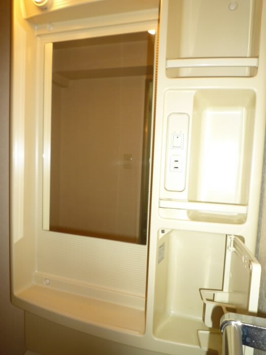 鏡の横と、洗面台の下に収納があるので、洗面用具や、