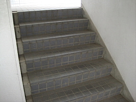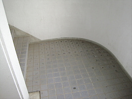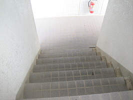 ④突き当りますと出口が見えてきますので階段を降ります。
