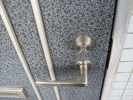 玄関の扉の上には、明かり取りのすりガラスが付いています。