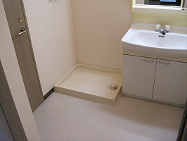 洗濯機を置くスペースもあるので、脱いだ服をすぐにお洗濯…なんて事もできます♪