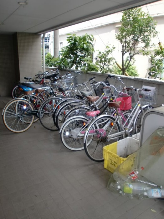 マンションの入り口には駐輪スペースがあるので、雨が降っても安心ですね。