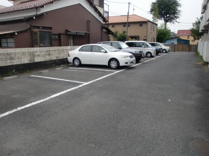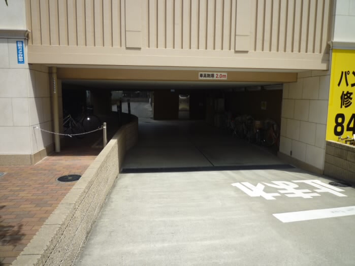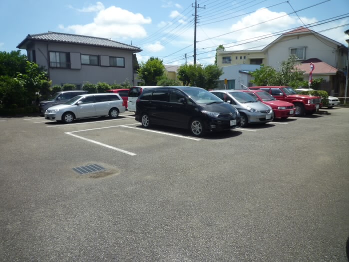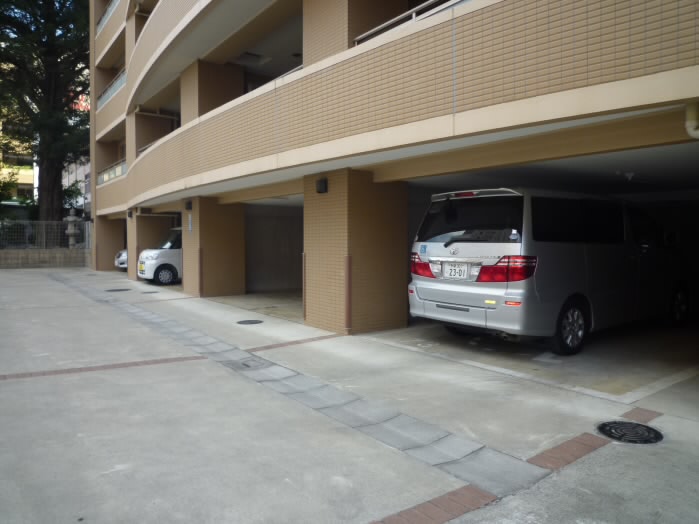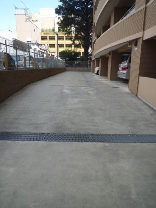 建物の入り口側は駐車場になっていますので、