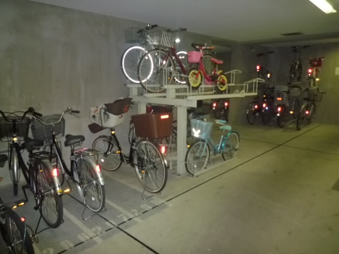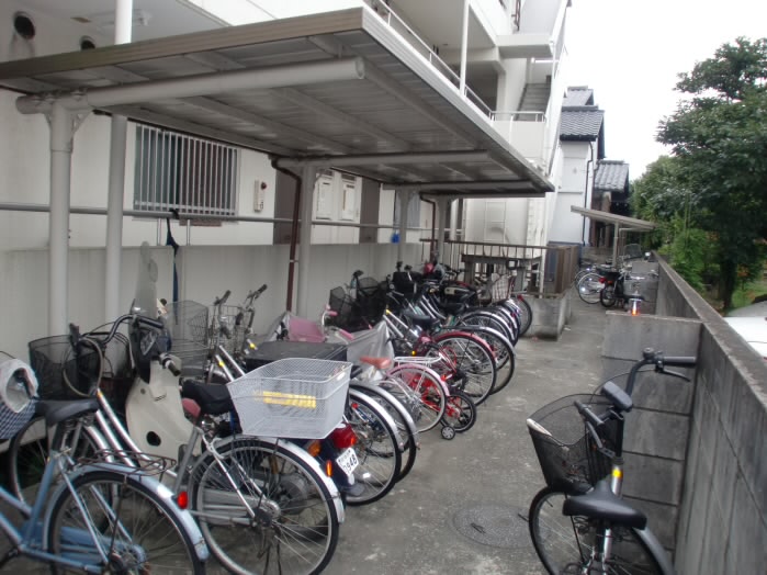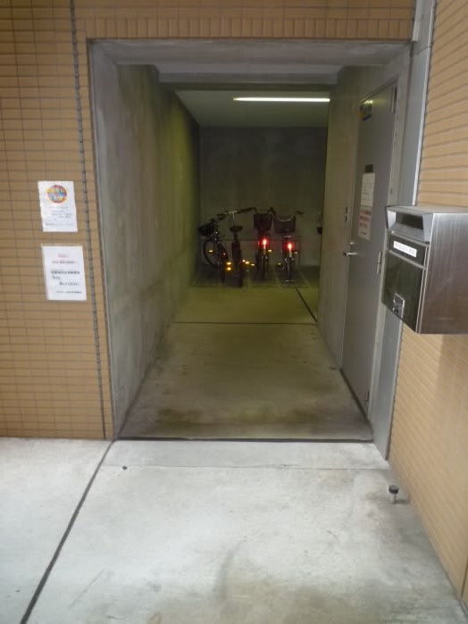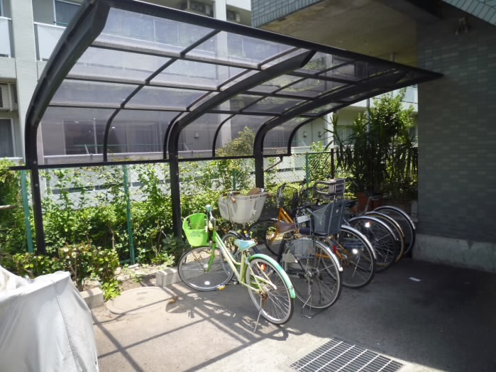 建物の正面側にも屋根つきの駐輪スペースがあります。