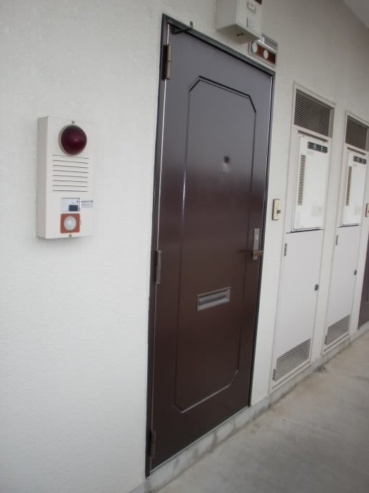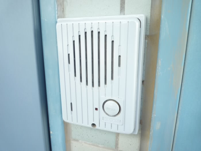 ドアの右側にはインターホンが付いています。