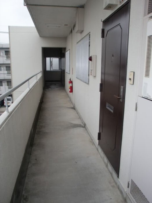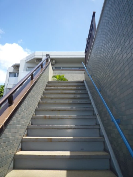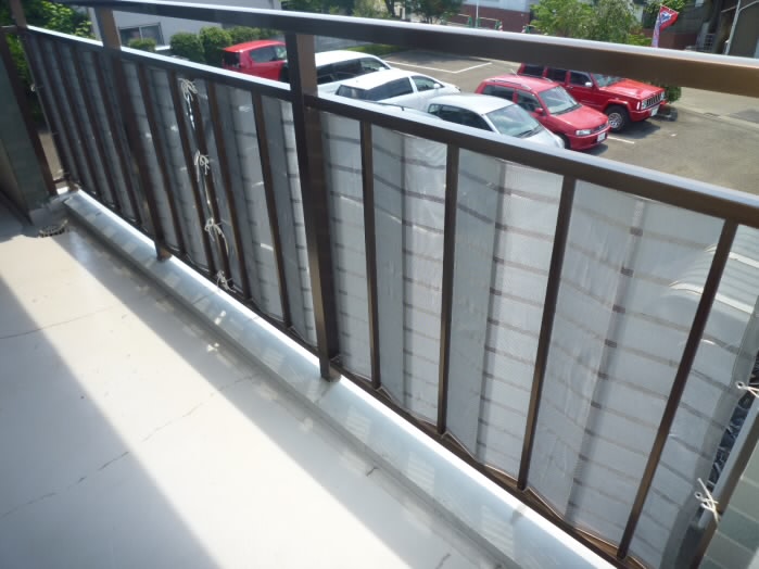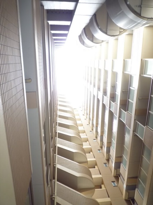 手すりには目隠しがされていたり、非常時用のロープも設置されています。