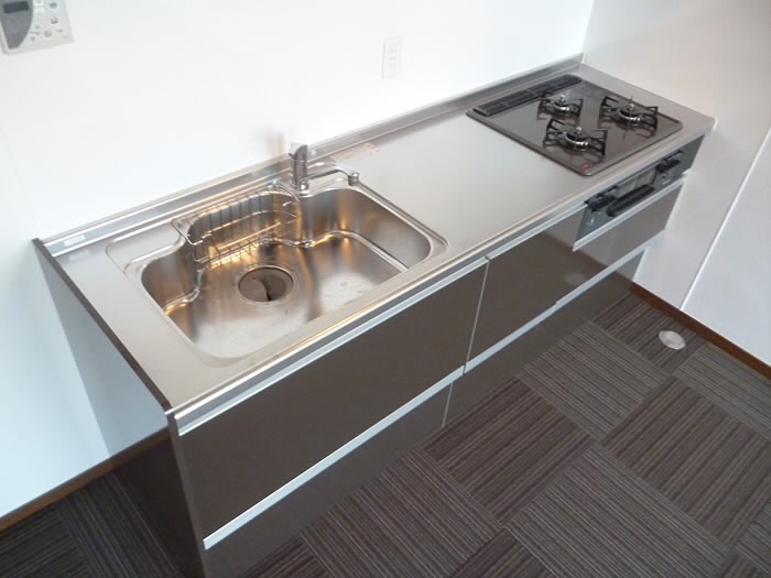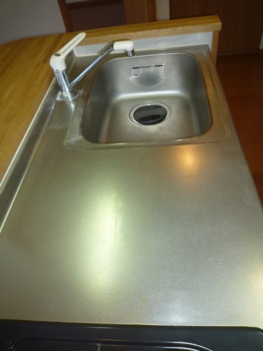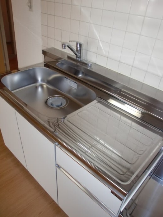 防水パンが付いているので、蛇口からの水や、