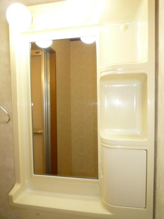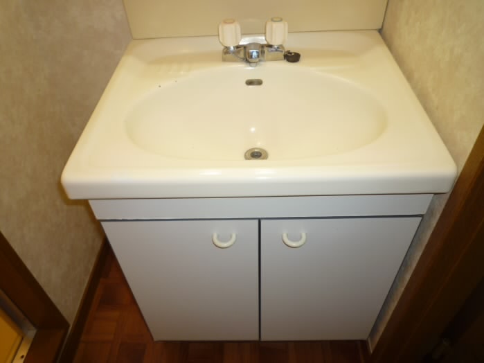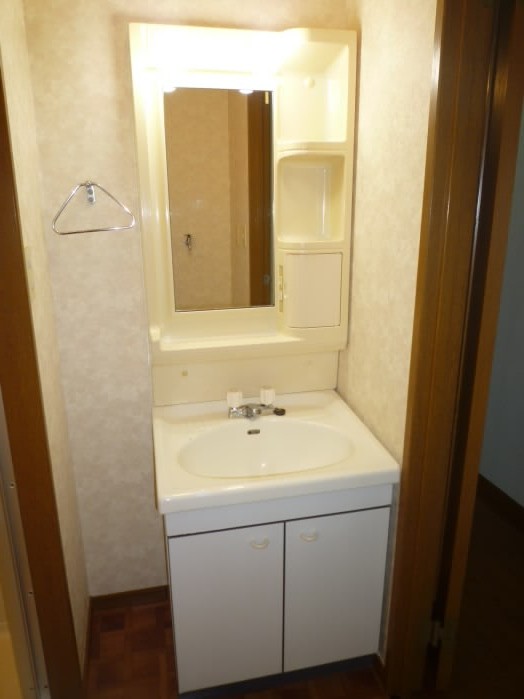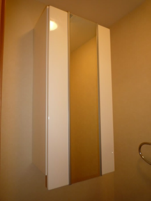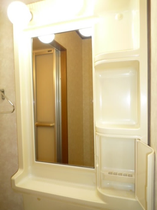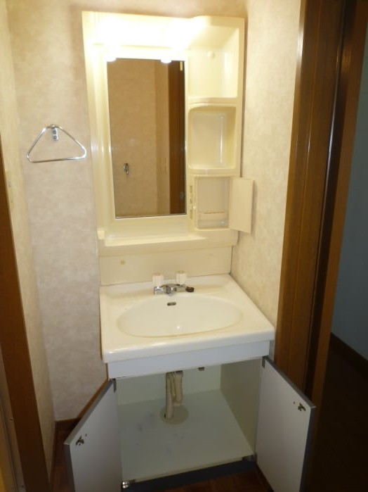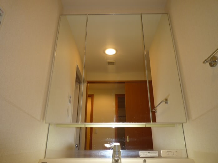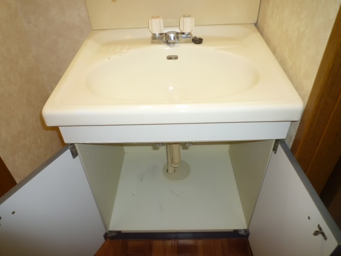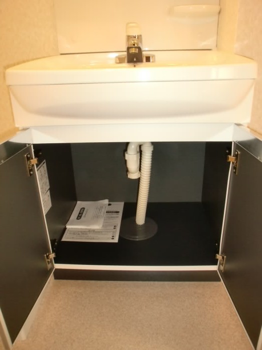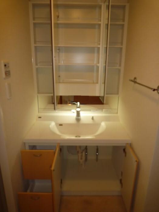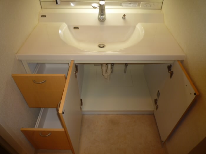 鏡の横と、洗面台の下に収納があるので、洗面用具や、