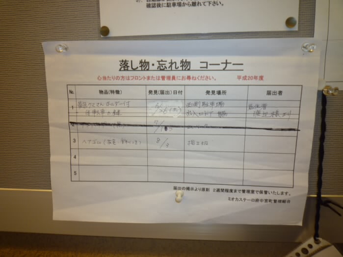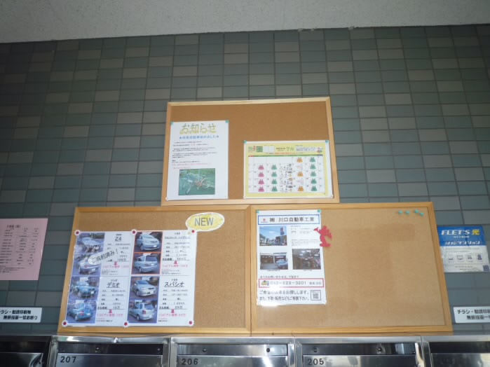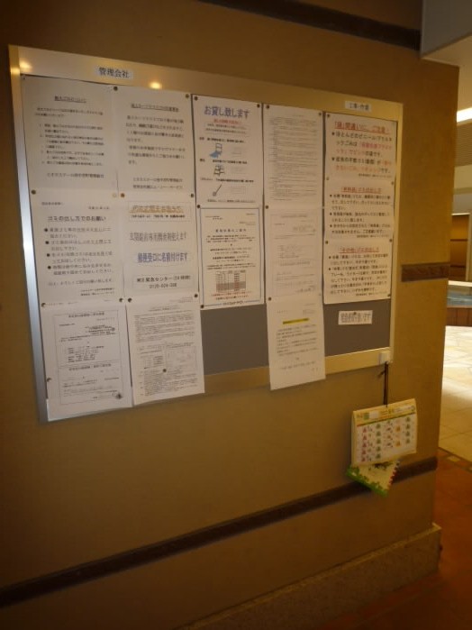 お知らせなどが貼られた掲示板があります。