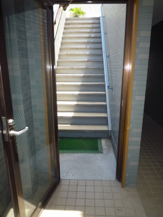 ④突き当りますと出口が見えてきますので階段を降ります。