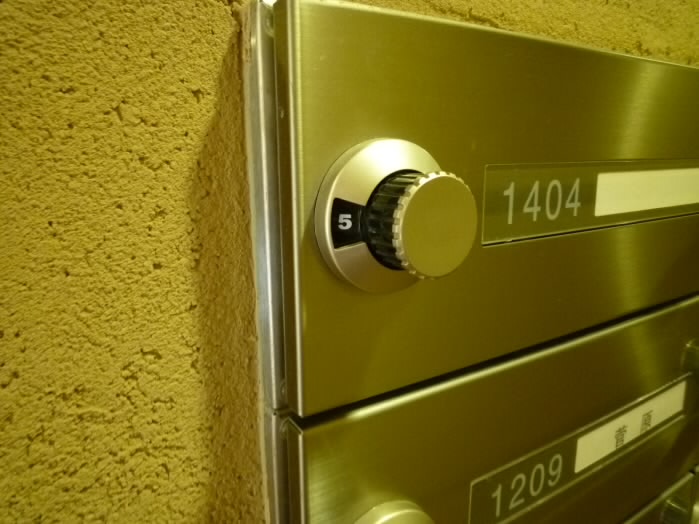 ダイヤルつきの集合ポストと、