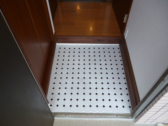 ドアを開けると、タイルがとても可愛い玄関スペースがあります!