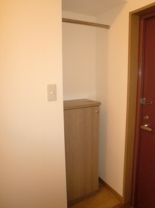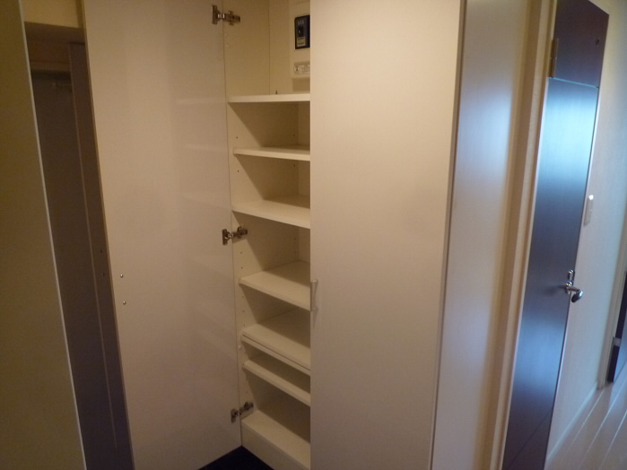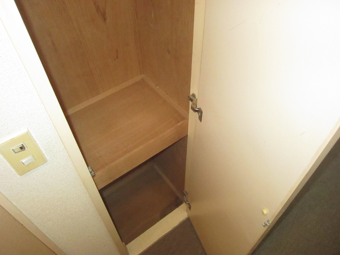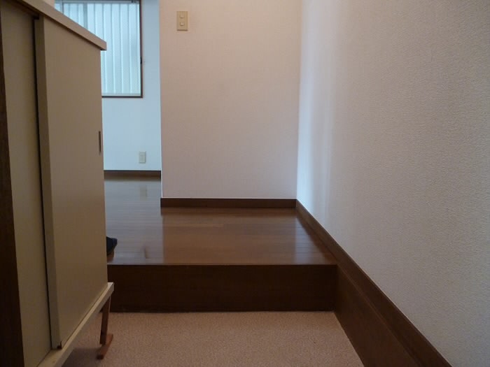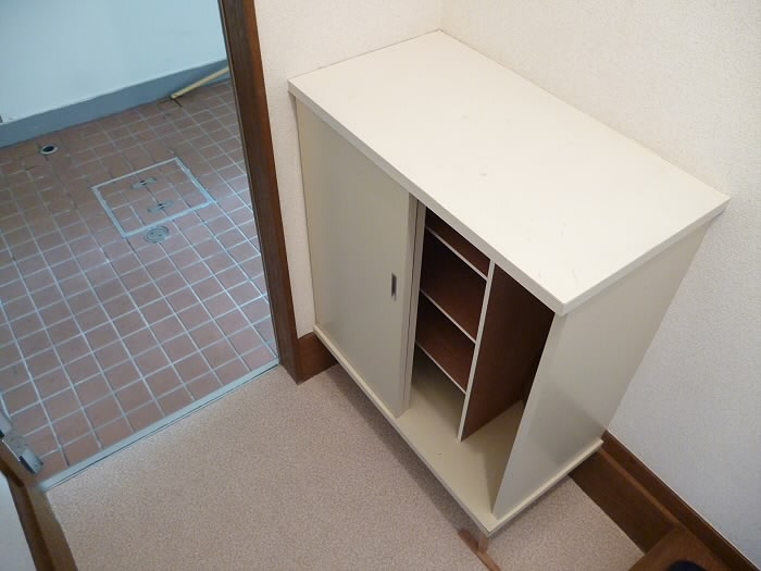 右側には、上に物が置けるタイプの下駄箱があります。