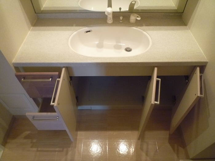 シンクの上下に大容量の収納を備えた