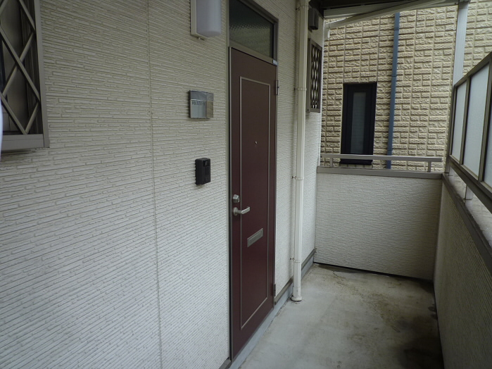 ドアの右側にはインターホンが付いています。