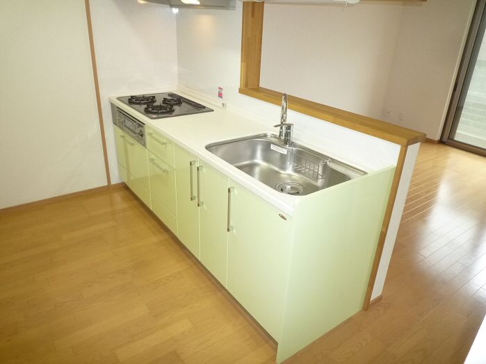 キッチンの壁はつるつるした材質になっているので、