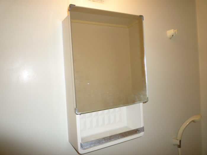 鏡の裏も収納になっているので、洗面用具などもバッチリ収納できます。