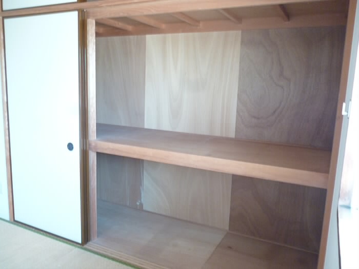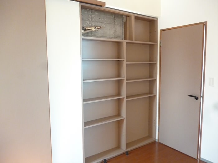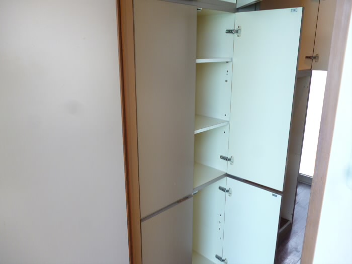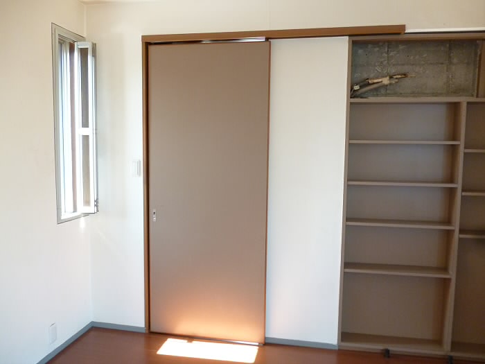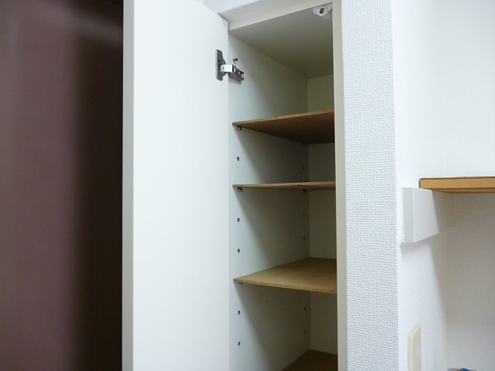 浅めの棚と、ウォークインクローゼットへの扉です♪