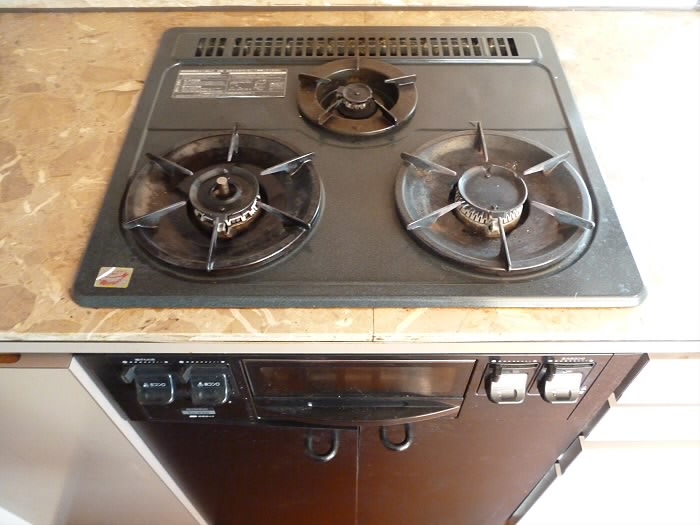 コンロが3口、魚焼きグリル、広~~い作業スペース