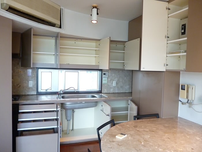 キッチンの戸棚を全て開けるとこんな感じです!