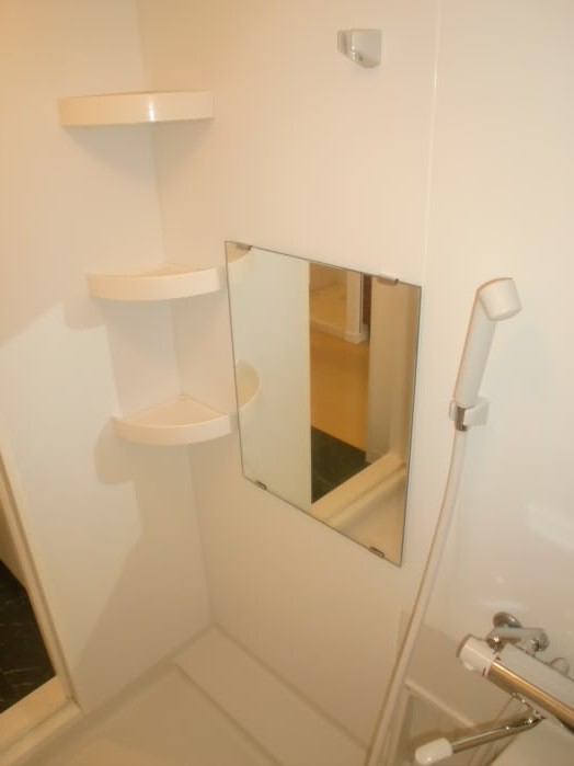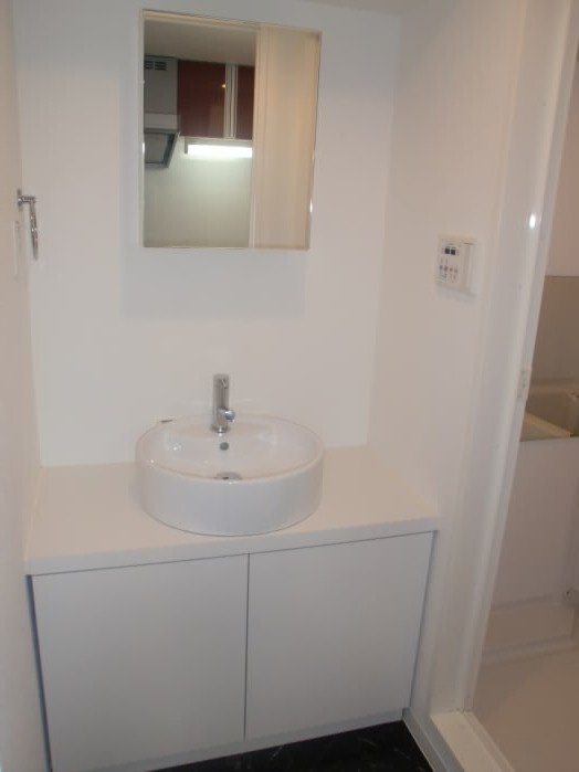 鏡横には、歯ブラシホルダーなどの収納があります!