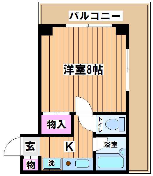 個人ロッカー付き、内・外収納力抜群の1Kのお部屋です!