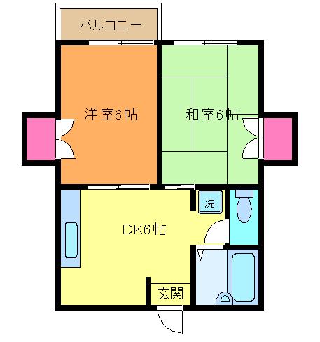 間取り 2DK (DK6帖、洋室6帖、和室6帖)
