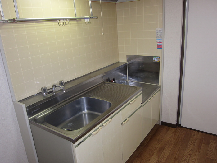 ダイニングキッチンは6帖ありますのでテーブルを置いて食事をとることが可能で、キッチンは広く収納もありますのでお料理が楽しくなりそうです。しかも窓があり換気もでき便利です☆